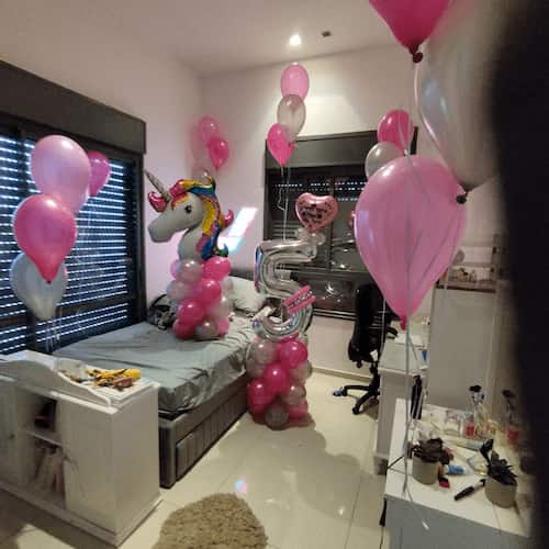 הפתעה מרגשת עבור המתוקות שחוגגות יום הולדת עיצוב חדר בלונים במיוחד לילדה.